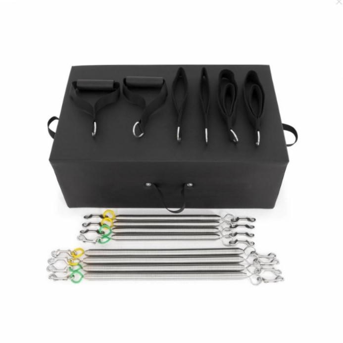 • - Stretch bar with anodized aluminum with rubber grip and padded protection. With security for upper and lower springs. Adjustable in three (3) positions