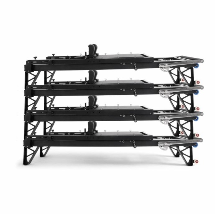 The most versatile and professional reformer. Incredibly adaptable and durable, superior construction for maximum safety and durability. Fixed foot bar, adjustable in five (5) different angles. Ideal for studios and clubs seeking versatility and practicality.
