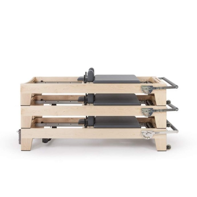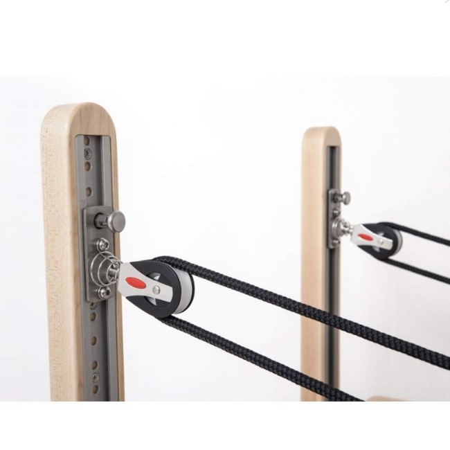 Get to the forefront and make a leap of quality in the Pilates with our new reformer, an exclusive and modern design thought to offer the best benefits to the professionals of the sector. It stands out as the first stackable reformer on the market and incorporates innovative systems such as the rapid change of positions of foot bar, spring bar and pulleys. Also, it has front and rear stability straps, and offers an extra smooth glide.